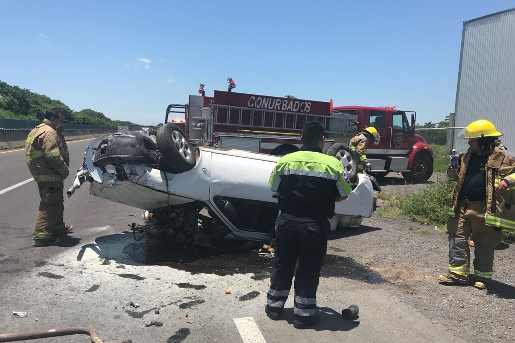 Al parecer el conductor de la camioneta Courier fue impactada por una camioneta Peugeot Partner, con placas de la Ciudad de México por lo que perdió el control el conductor y e impactó contra el muro de contención y se volcó.