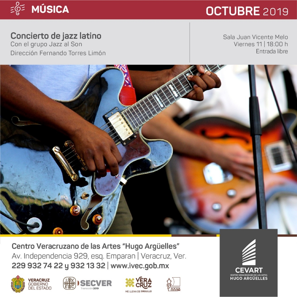 El Instituto Veracruzano de la Cultura (IVEC) invita al concierto del grupo Jazz al Son, dirigido por Fernando Torres Limón, acompañado de académicos y titulados de Centro de Estudios Superiores en Música Popular (CESMUP), el 11 de octubre a las 18:00 horas, en el Centro Veracruzano de las Artes (CEVART); entrada libre.