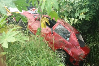 Reportes indican que el conductor de un auto color rojo salió de la carpeta asfáltica y volcó en el puente J.B. Lobos con dirección al aeropuerto, resultando lesionado.