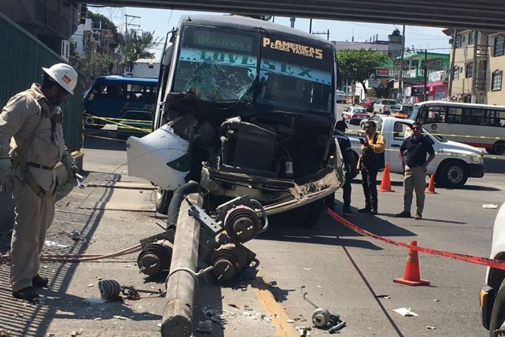 La tarde de hoy una unidad del transporte público urbano con número económico 93 se impactó contra un poste de luz en la calle de Tuero Molina, entre Miguel Alemán y Salvador Díaz Mirón, en Veracruz.