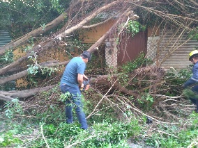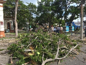 Una de ellas cayó en parte de un establecimiento de comida conocido como palapa, dejando daños leves en la parte del techo; Obstruyó toda la banqueta y no dejó personas lesionadas.