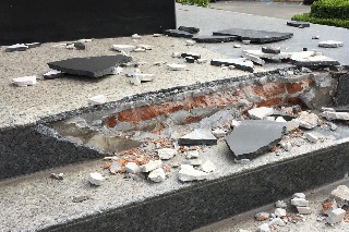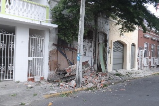 En la escuela de las calles Mariano Arista y 16 de septiembre parte de la estructura del obelisco a los héroes del 21 de abril, afortunadamente no se reportan heridos, sin embargo el escombro permanece en la escalinata de la escultura.