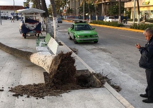 Dos palmeras de gran tamaño cayeron sobre la banqueta del bulevar Ávila Camacho a la altura de Villa del Mar en la ciudad porteña.