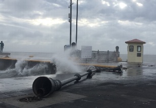 Se han reportado la caída de dos luminarias en el malecón de Veracruz, donde la marejada provocaba que las olas cubrieran hasta la zona peatonal.