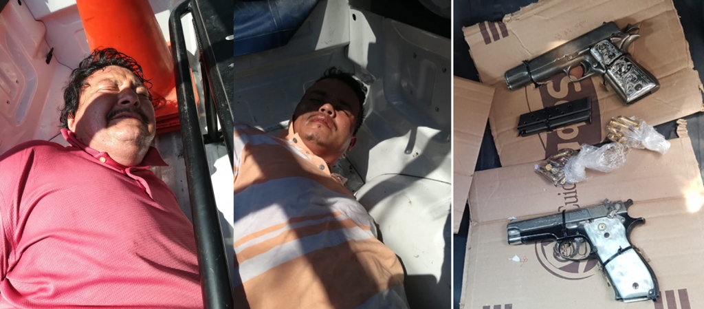 Quedando asegurados dos sujetos que portaban armas de fuego, además del vehículo y logrando el rescate de las dos mujeres y otro sujeto más.