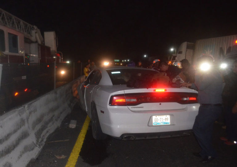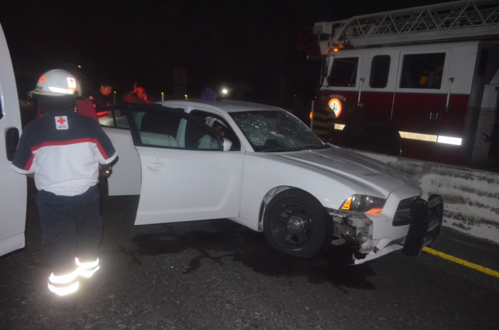 Los hechos ocurrieron a la altura de la localidad El Palmar, cuando una camioneta blanca Chevrolet Silverado golpeó contra el muro divisorio y volcó, un vehículo Charger, con placas oficiales de la Secretaría de Seguridad Pública (SSP), que iba detrás se impactó, al parecer el conductor golpeó la cabeza con fuerza contra el parabrisas y murió.