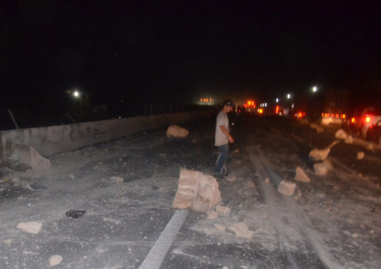 Uno de los pedazos de concreto del muro, alcanzó a impactar a una patrulla Dodge, tipo Charger, color blanco, propiedad de Seguridad Pública, donde viajaba el comandante con el nombre clave Matrix, adscrito a la Recuperación de Vehículos, el cual falleció en el lugar.
