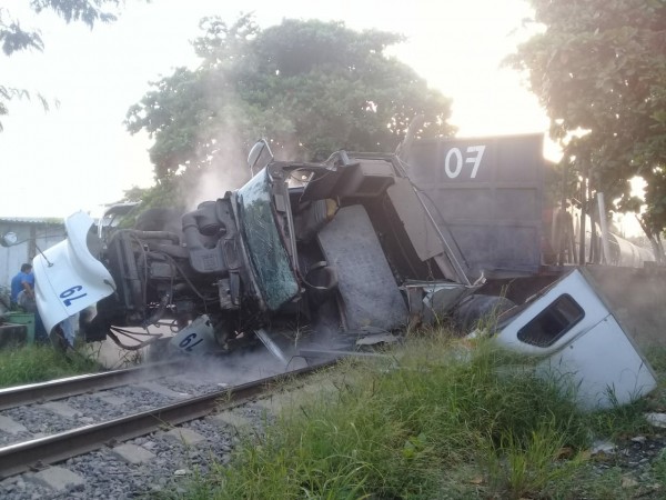 Esta mañana s un tráiler fue impactado y arrastrado varios metros por el tren, pues el conductor intentó ganar el paso en la carretera federal Veracruz-Xalapa, a la altura de Tejería y TAMSA.