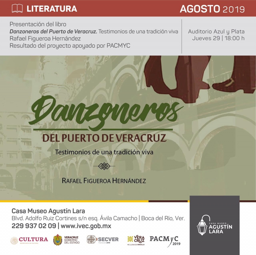 El Instituto Veracruzano de la Cultura (IVEC) presenta el libro Danzoneros del Puerto de Veracruz: Testimonios de una tradición viva de Rafael Figueroa Hernández, en la Casa Museo Agustín Lara “La Casita Blanca” ubicada en el bulevar Adolfo Ruiz Cortines, fraccionamiento Costa Verde, en Boca del Río, Veracruz, a las 18:00 horas este jueves 29 de agosto, con entrada libre.