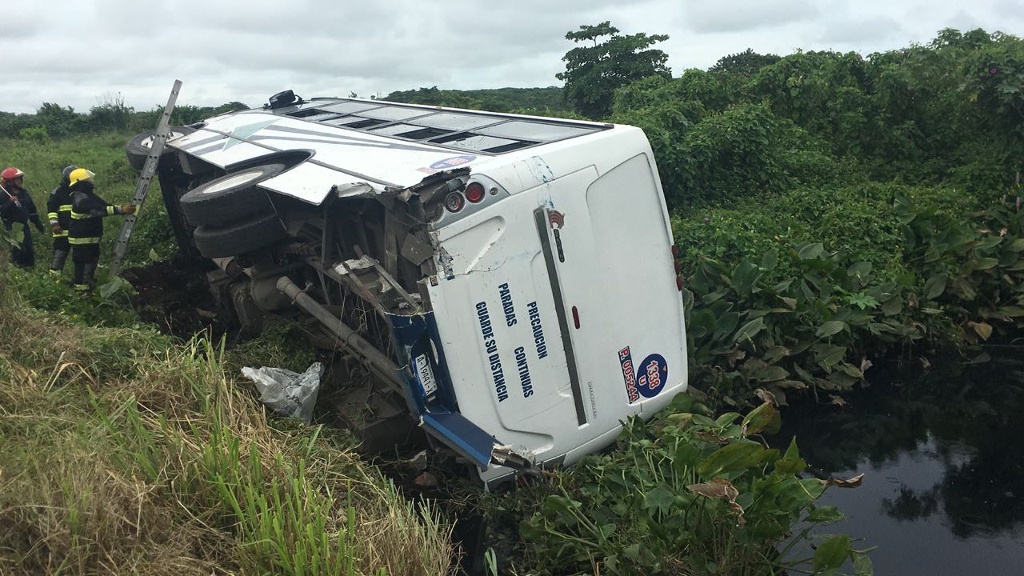 El día de hoy un tráiler impacto la parte trasera de un autobús de pasajeros lo que provoco que perdiera el control de la unidad y saliera de la carretera Veracruz - Cardel para volcarse entre los matorrales, dejando como saldo alrededor de 24 personas heridas.