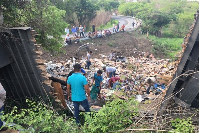 En el mencionado punto arribaron decenas de vecinos de la zona acudieron para robarse diversos productos a pesar de que se encontraban elementos de las policías Naval y del estado, ya que los superaban en número.